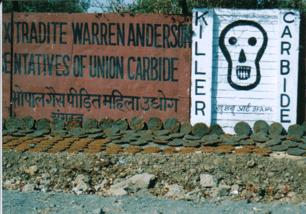 一方、事故の責任をとるべきUCのアンダーソン最高経営責任者(当時)は、裁判所の召喚を無視して逃亡中で現在も行方不明となっている。アメリカにおける裁判の進捗状況は、被害者・支援団体のホームページで追うことができる。工場跡地の塀には彼の処罰を求めるメッセージが描かれていた。