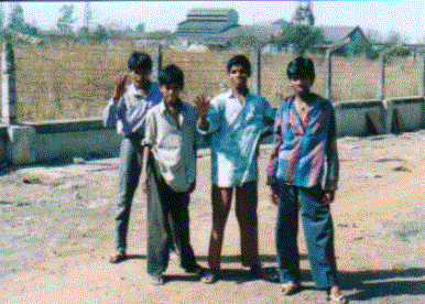 左:サンバヴナ・トラスト民衆診療所 右:工場付近の少年たち